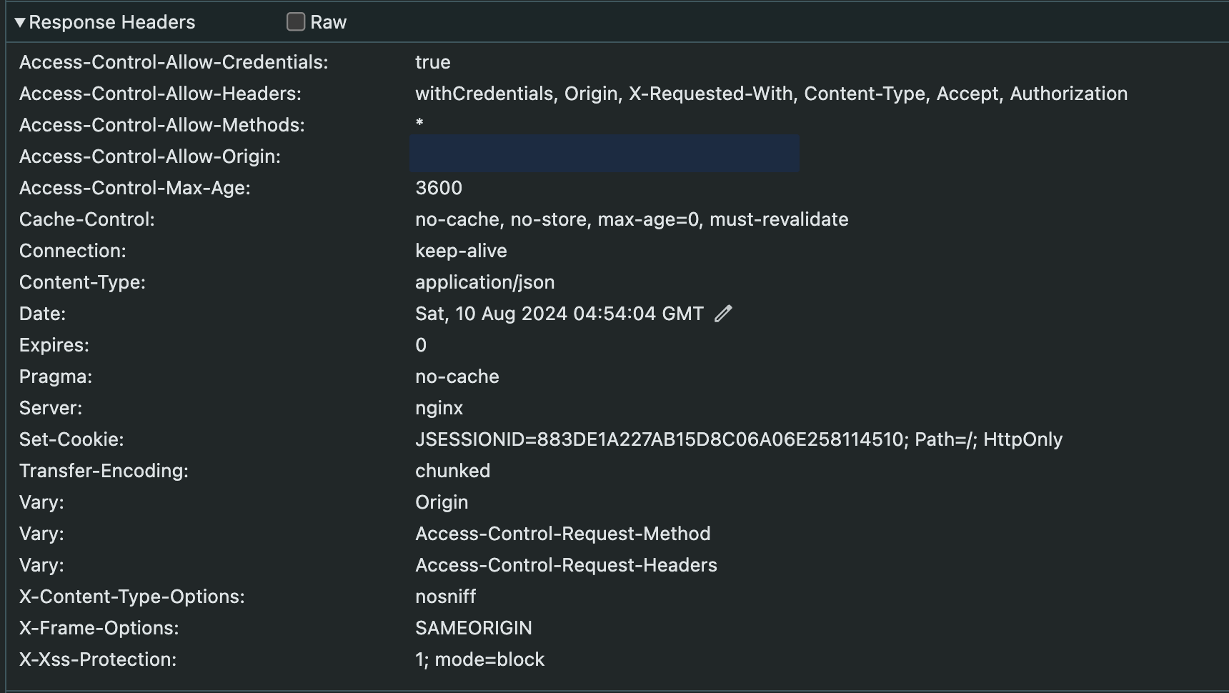 개발자 도구에 응답값 헤더에서 확인해보면 Set-Cookie하고 JSESSIONID를 보내주고 있는 것을 확인할 수 있다.