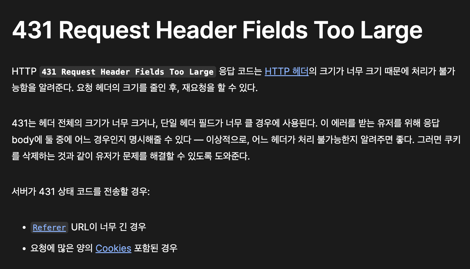 431 에러가 난다면... 🥹