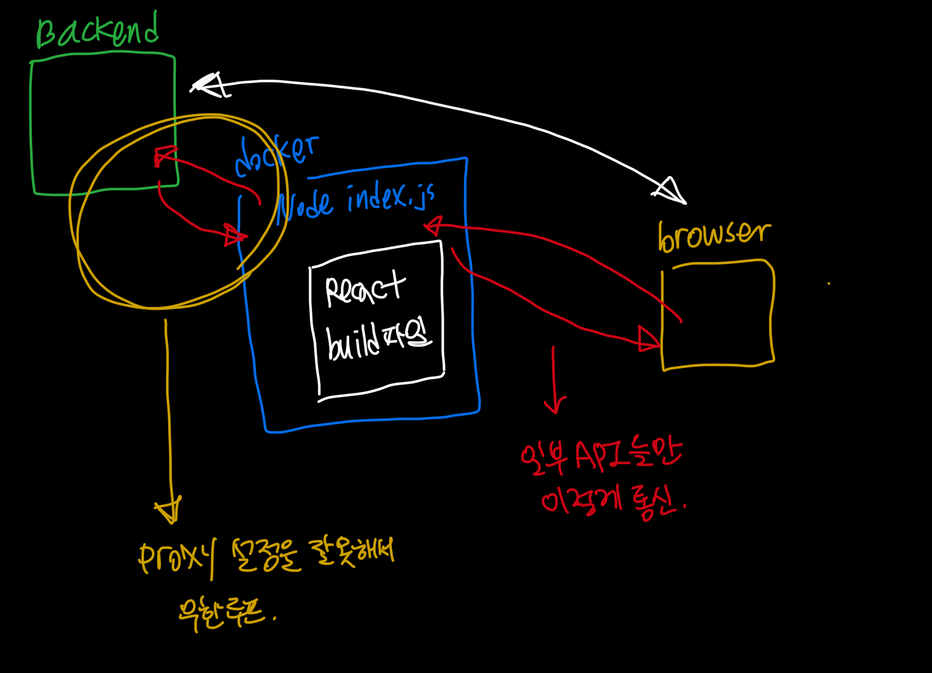 node의 index.js 안에 프록시를 백엔드 API URL로 해놨어야 했는데