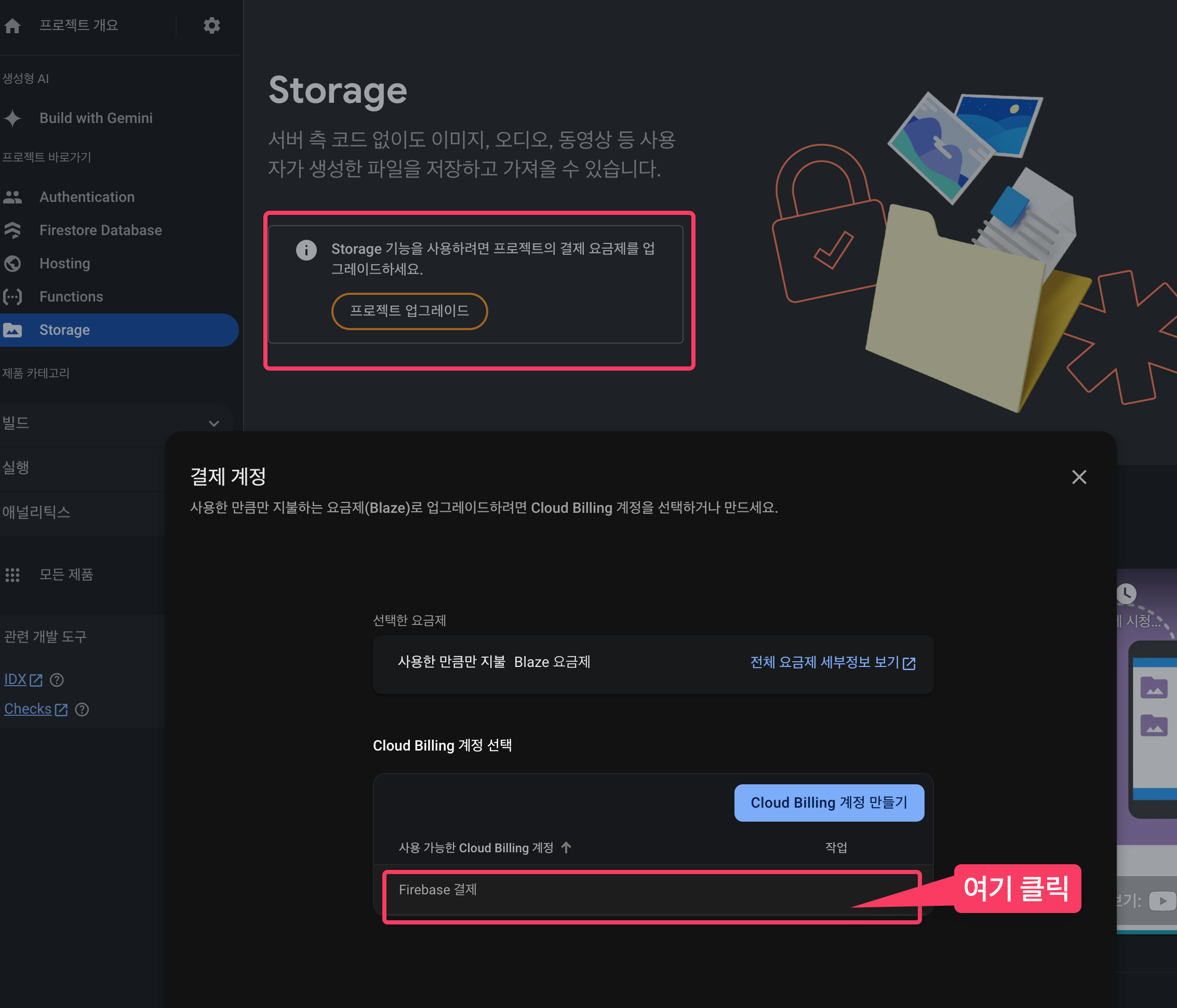 요금제가 Blaze 요금제로 바뀌고 Storage를 사용할 수 있게 된다.