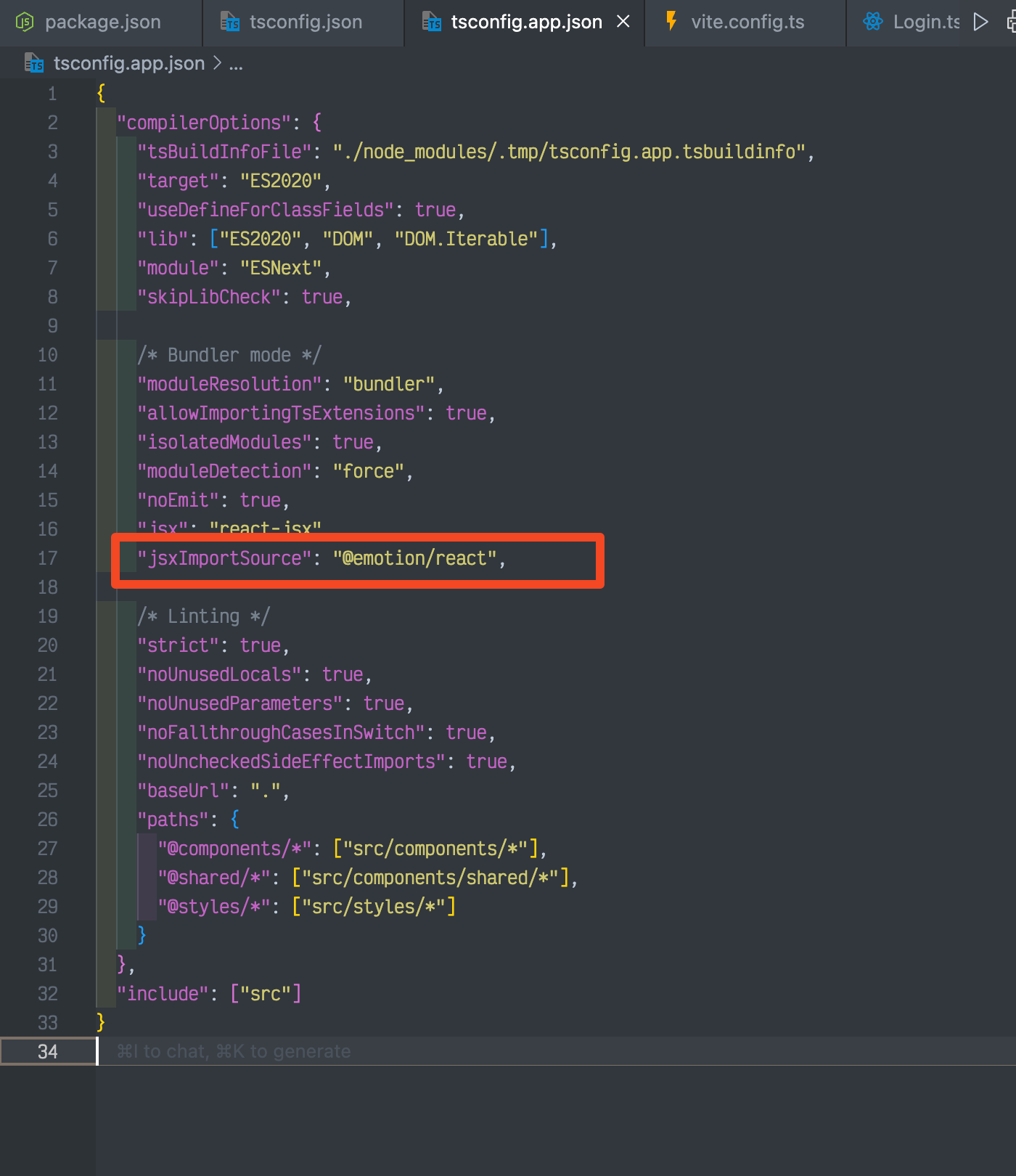 "jsxImportSource": "@emotion/react",