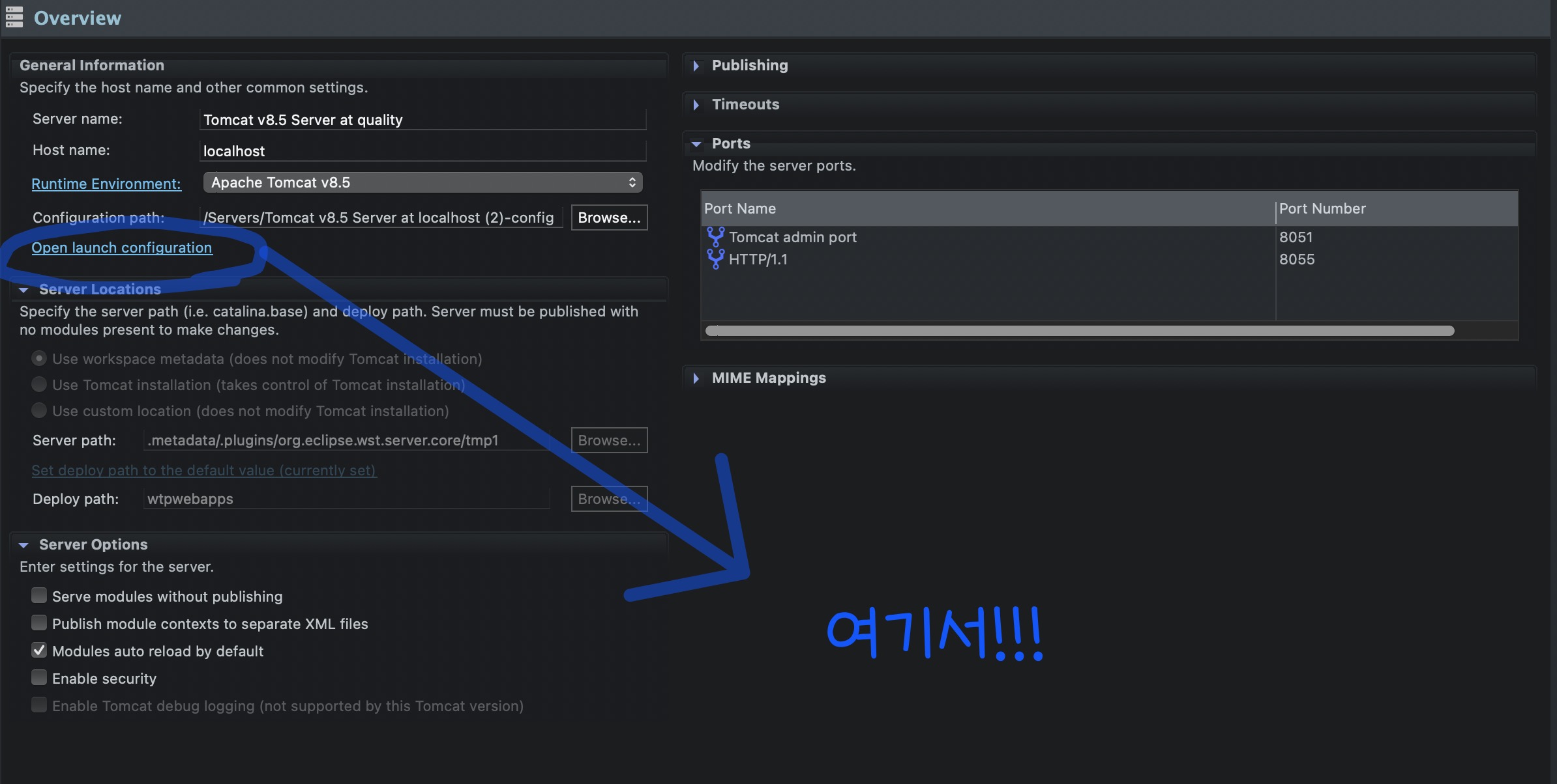 톰캣 더블 클릭해서 설정 창 나오면
