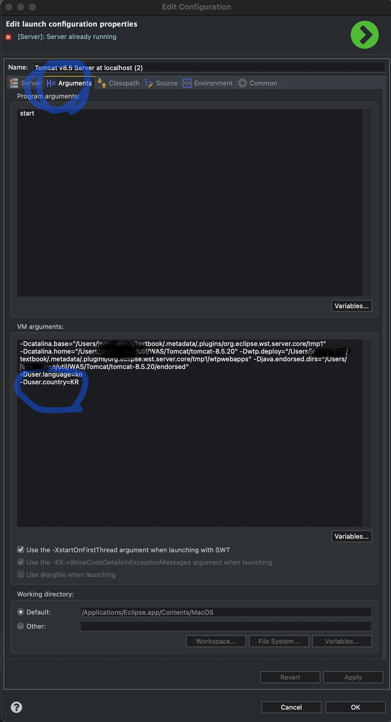 미국 다녀오면 된다고 해서 미국도 다녀왔는데 안되다가 (맥북 언어 -> 나라를 미국 -> 전원 종료 -> 한국 -> 전원 종료 -> 이클립스 재실행)