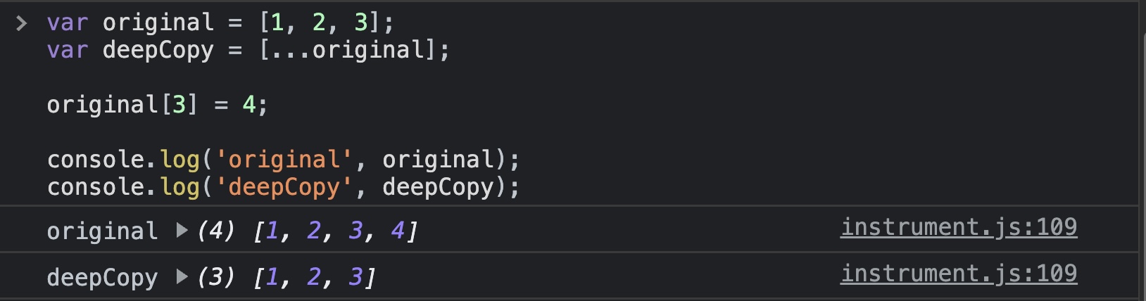 각각 독립적인 값을 가지도록 Array, Object를 복사하기 위해서는 Spread Operator를 이용해야한다.