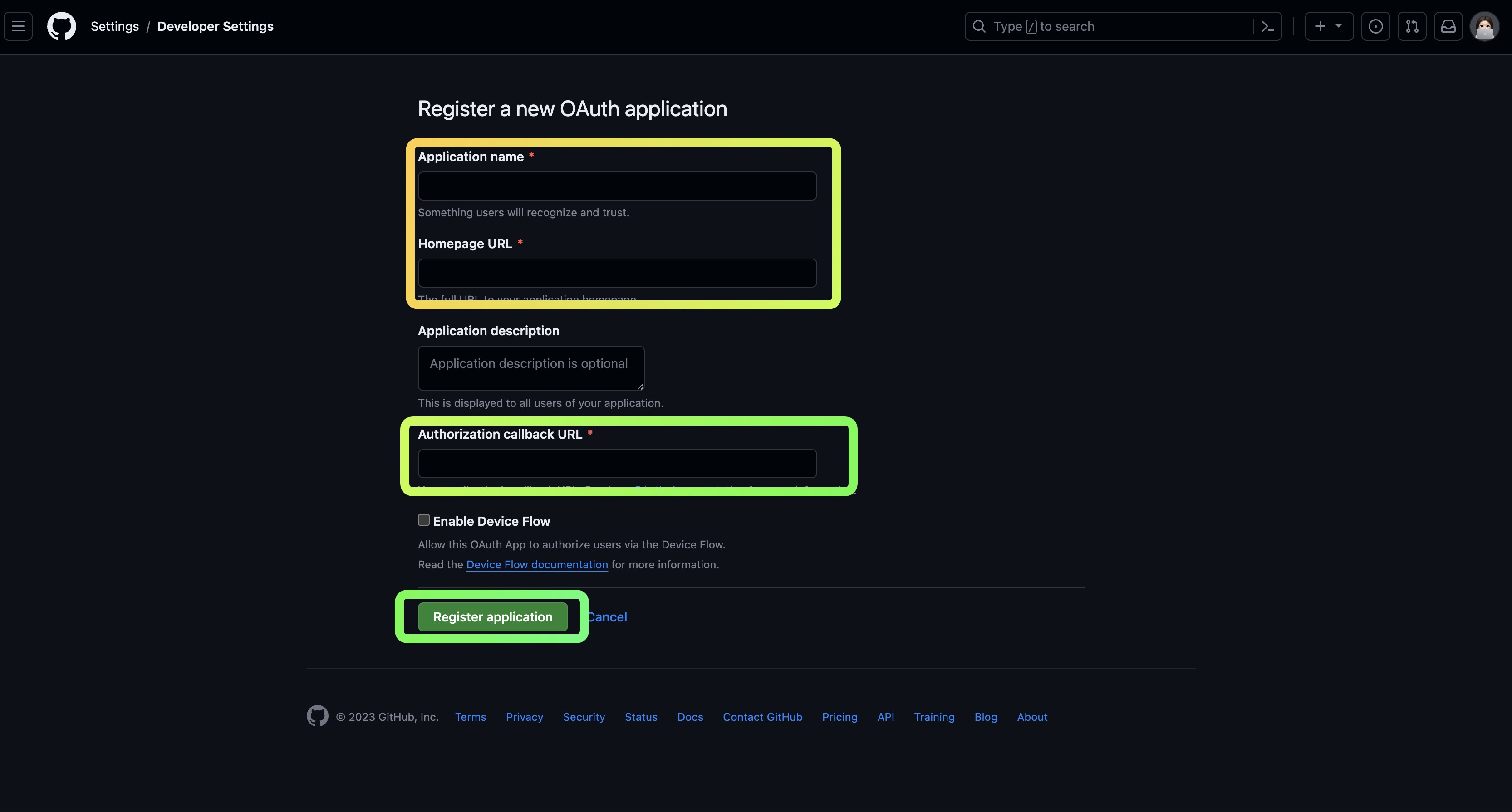 New OAuth App를 클릭해서 권한을 만들어준다.