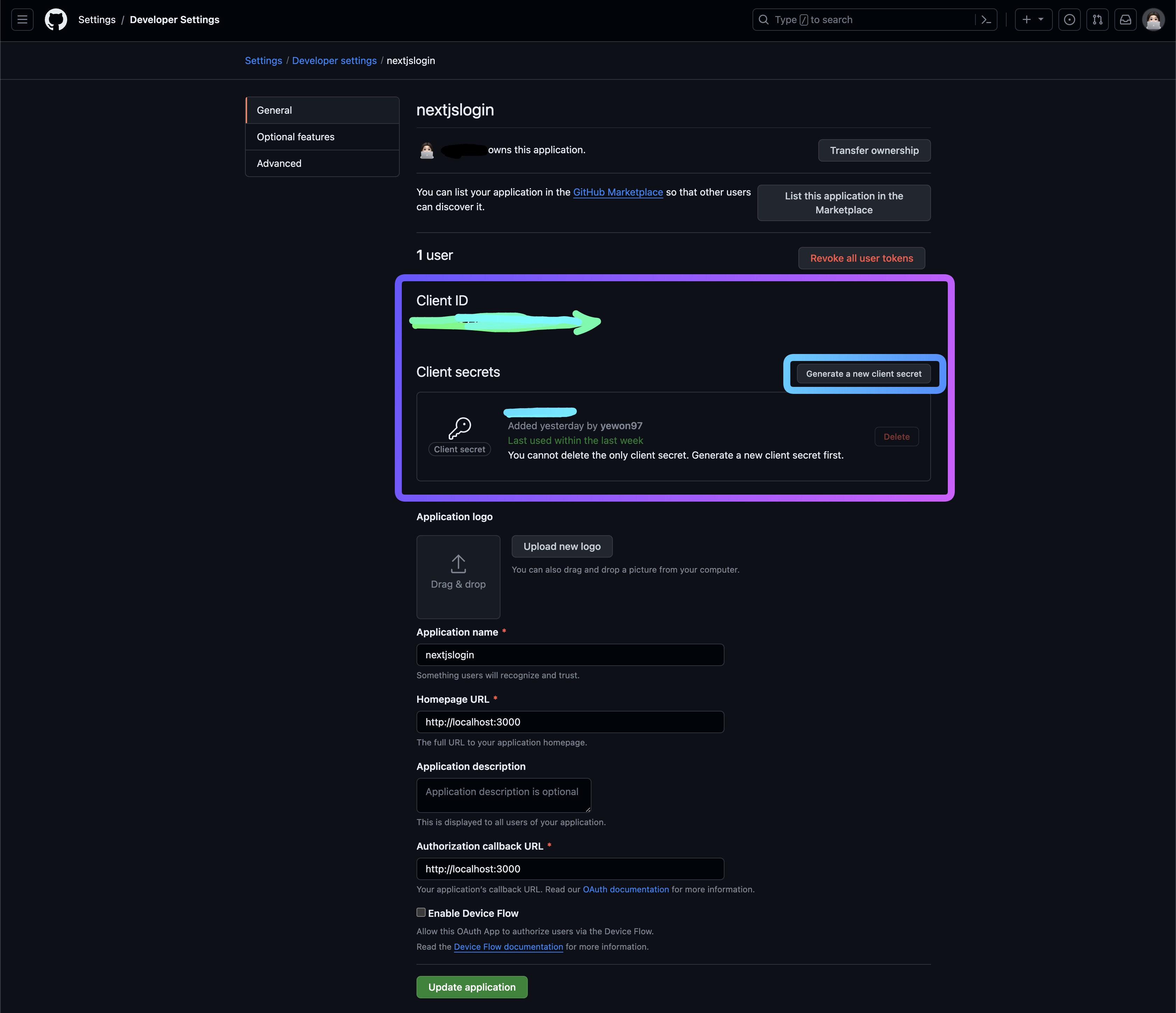 대신 process.env.GITHUB_ID랑 process.env.GITHUB_SECRET는 내가 발급받은 것으로 적용해야한다..env 파일에 작성해놓고 사용하면된다.