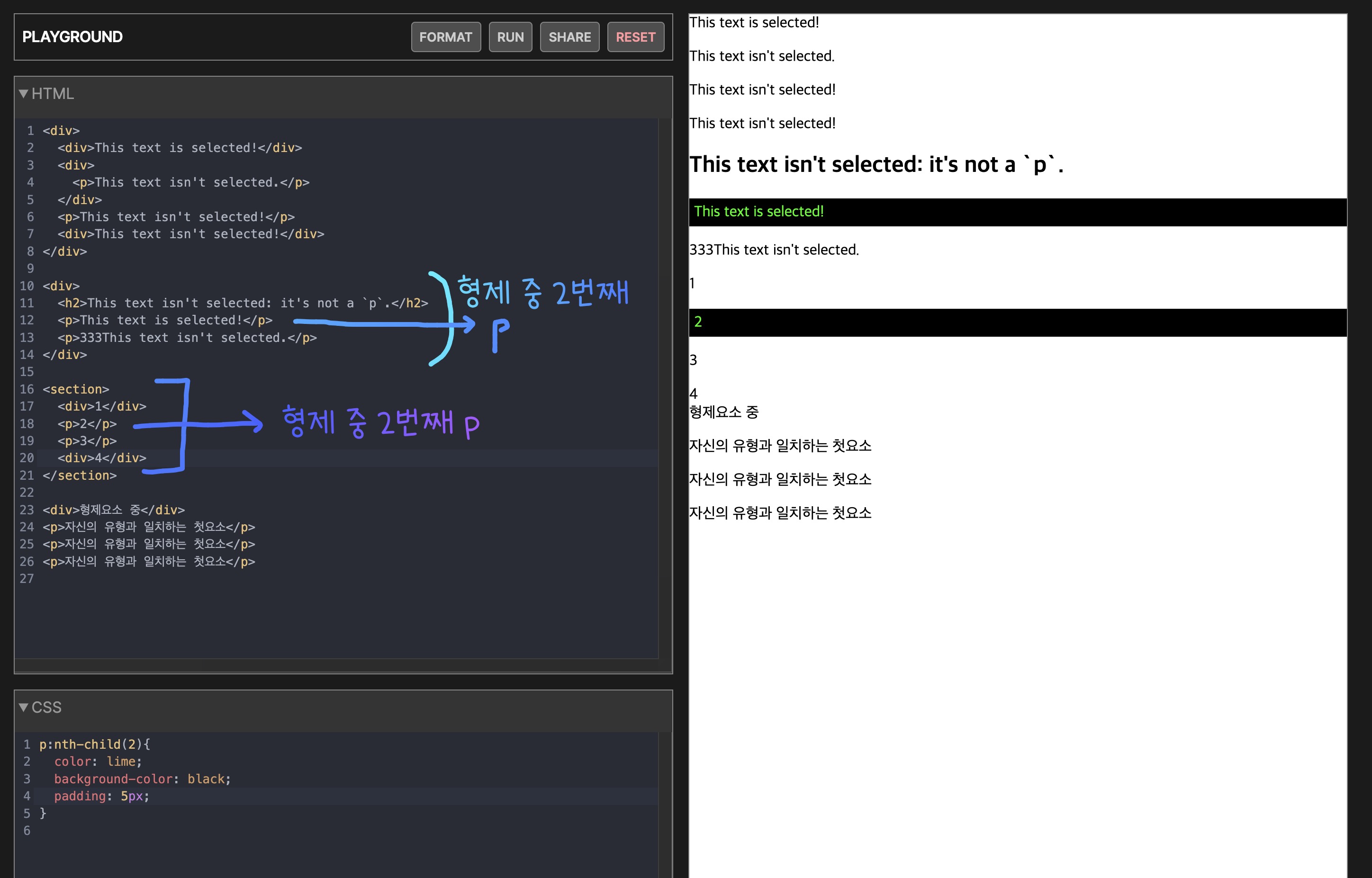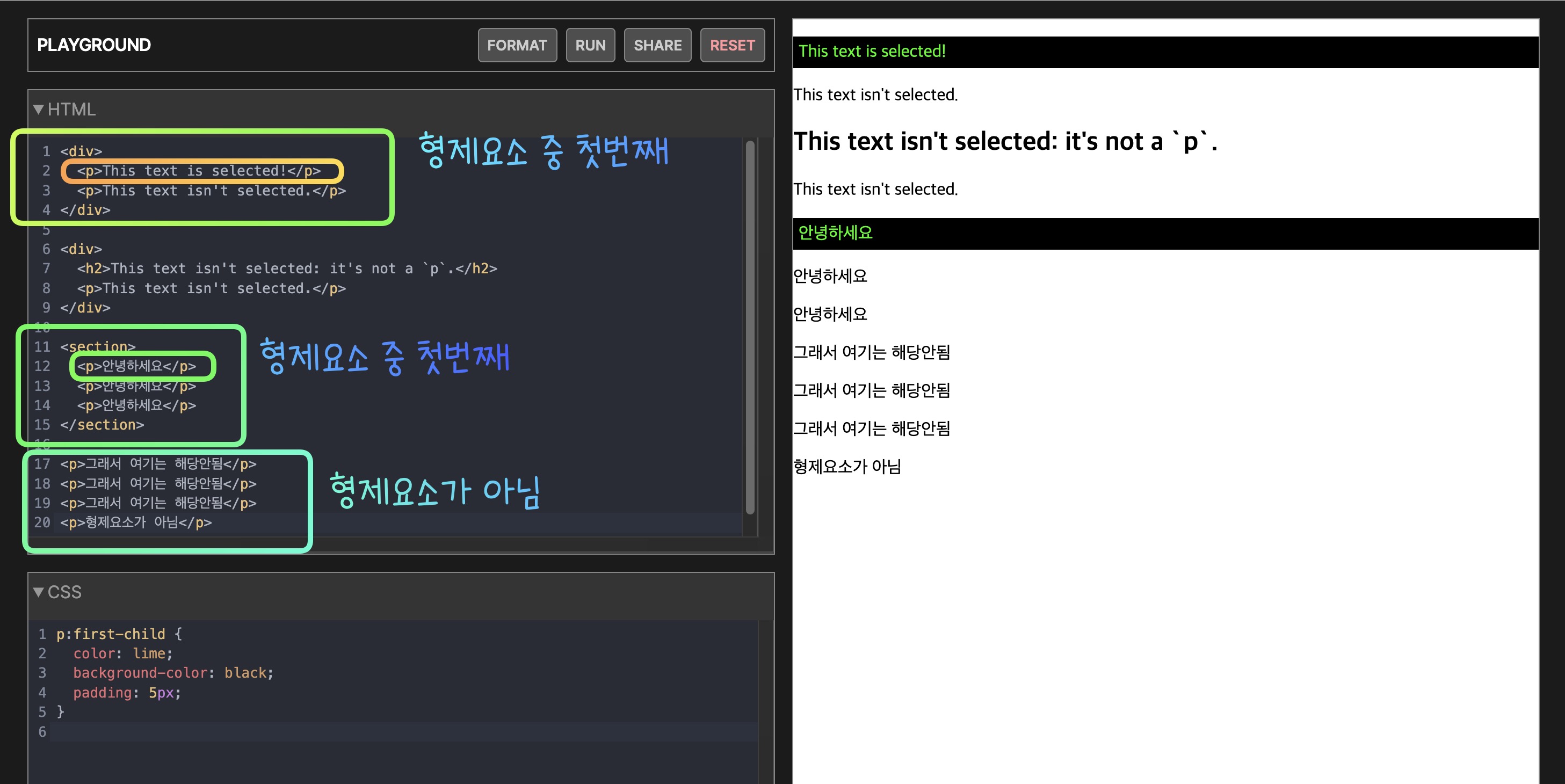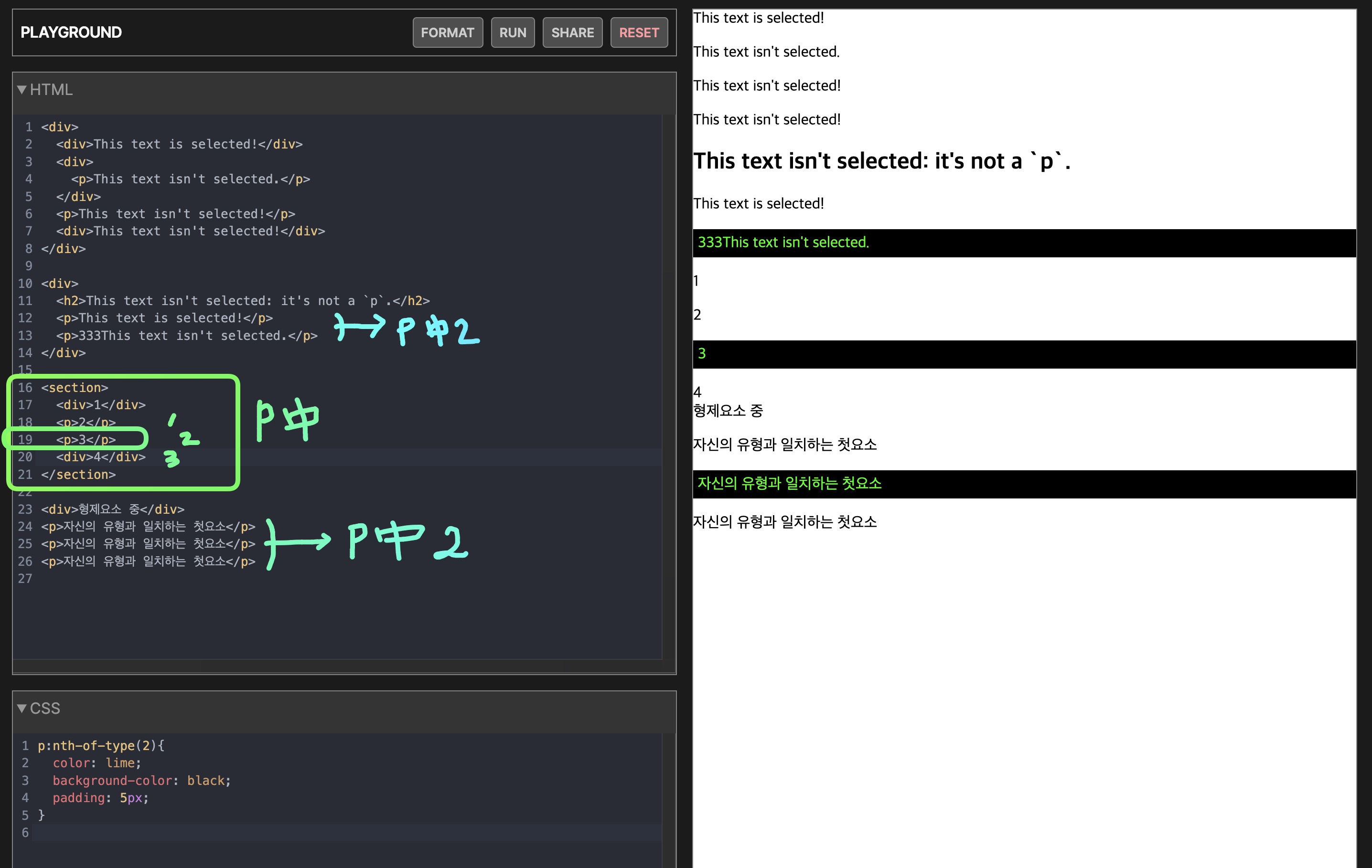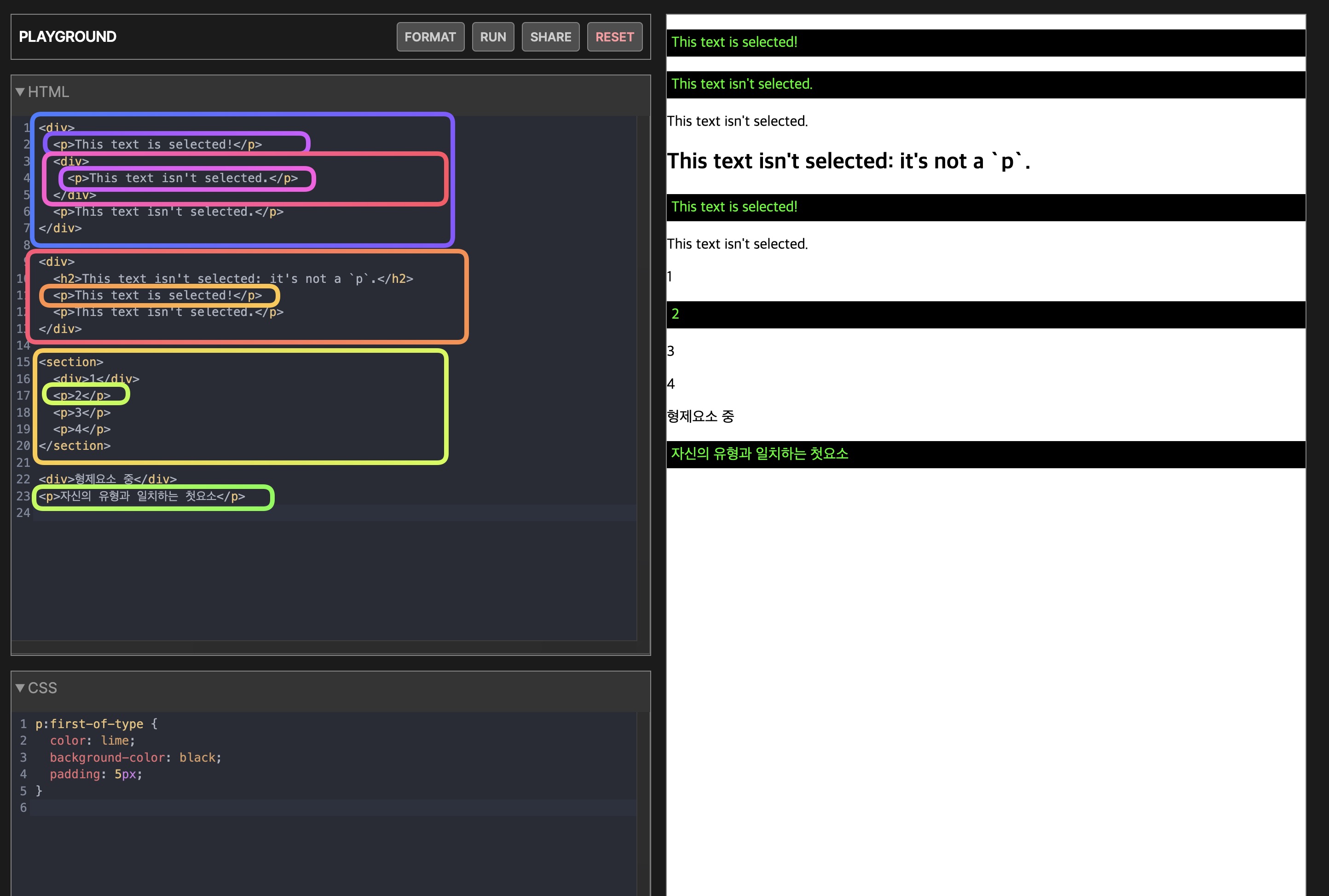 p의 first-of-type이면 p태그 중 자신이 무조건 첫번째라면 다 해당된다.