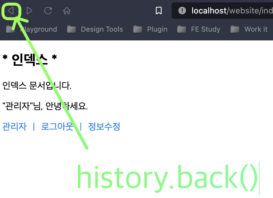 - 이전으로 버튼에는 뒤로가기 버튼을 만들어 준다. => history.back()