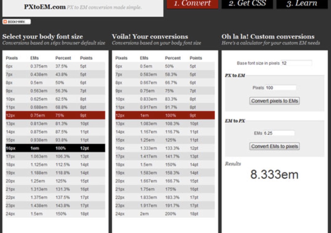 그래서 찾아본 px to em converter 사이트!