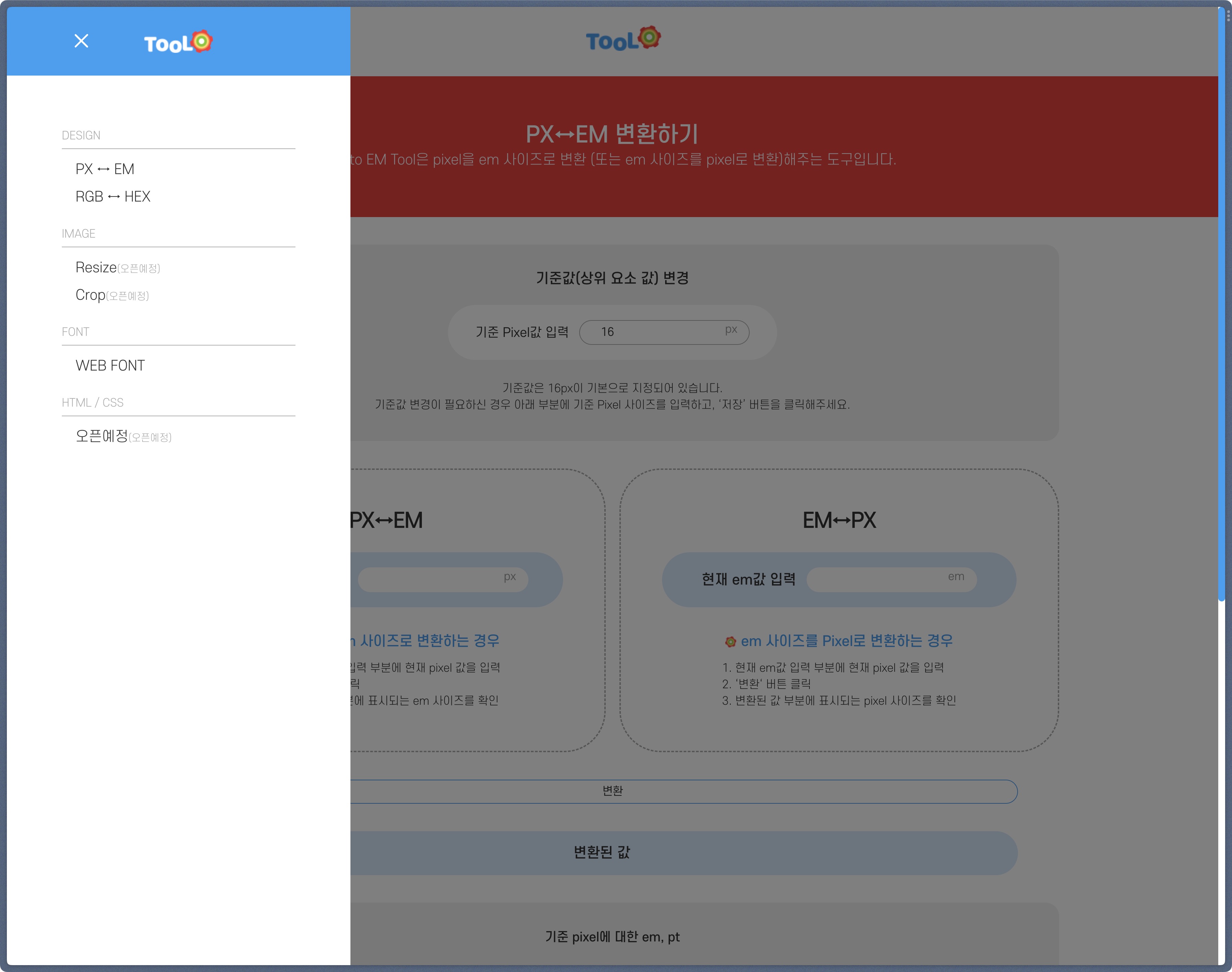 pxtoem 이라는 사이트가 원래 있었는데 없어졌다.