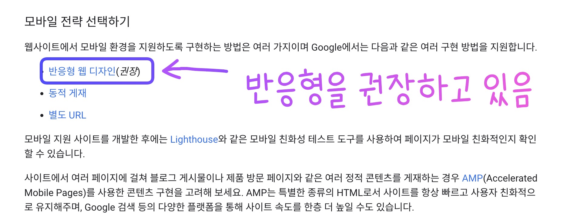 - 적응형 홈페이지 경우 mobile 사이트는 m.xxxxx.com, pc 사이트는 xxxxx.com 이렇게 주소가 나뉘는데 주소가 나눠지면 동일한 내용의 웹사이트라도 검색 엔진이 판단할 때 둘 중 어떤 것이 정확한 정보인지 확인하기 힘들어 검색 결과에서 제외된다고 한다. (결과를 상위권에 배치하는 것이 상대적으로 분리해짐)