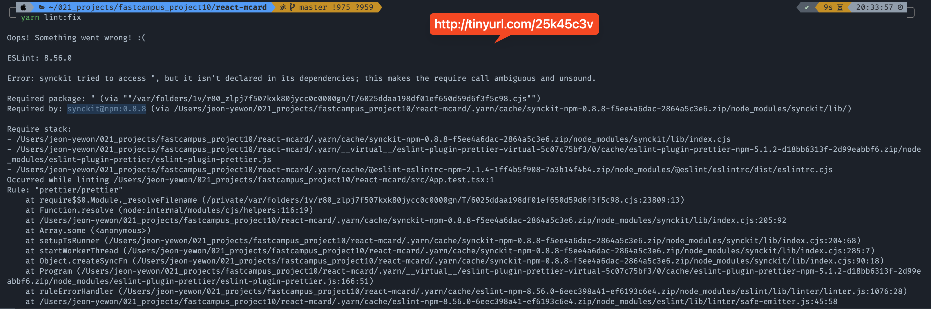 Required by: synckit@npm:0.8.8 (via /Users/jeon-yewon/021_projects/fastcampus_project10/react-mcard/yarn/cache/synckit-npm-0.8.8-f5ee4a6dac-2864a5c3e6.zip/node_modules/synckit/lib/)