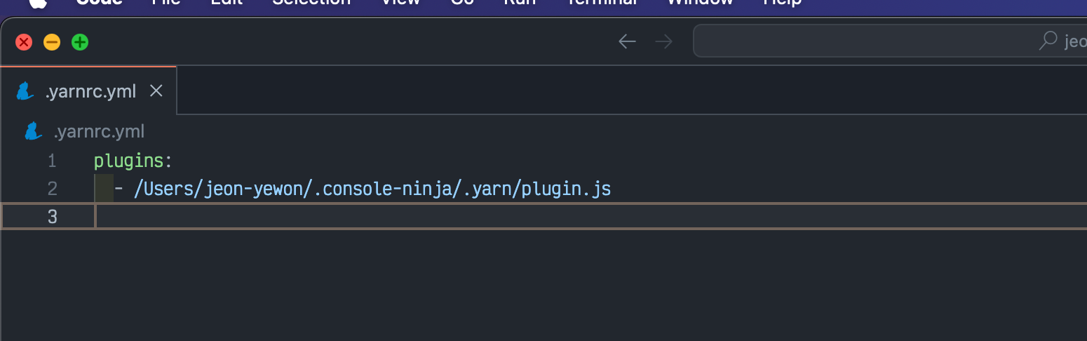 .yarnrc.yml 파일을 vscode로 띄운 후 수정하면 된다.