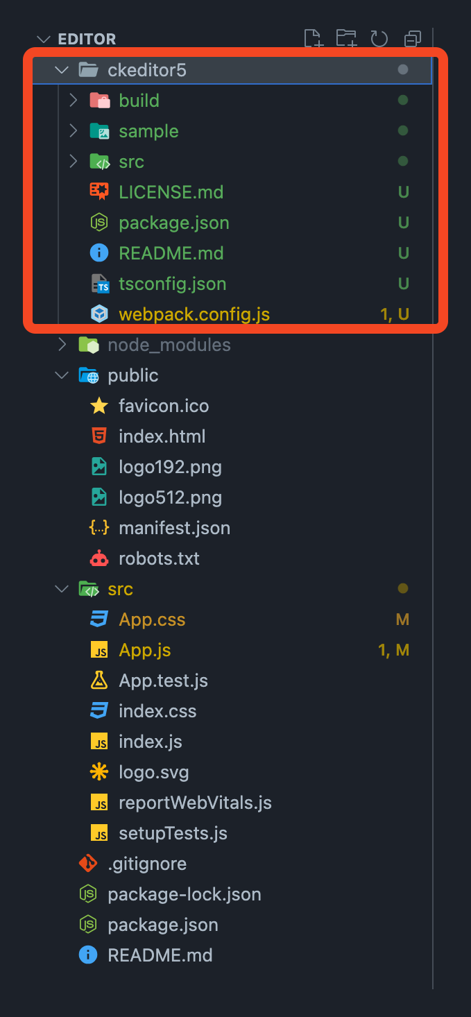 그리고 프로젝트 내부에 ckeditor5 폴더 만들어져서 zip파일 내부에 있는 파일들을 전부 옮겨줬다.