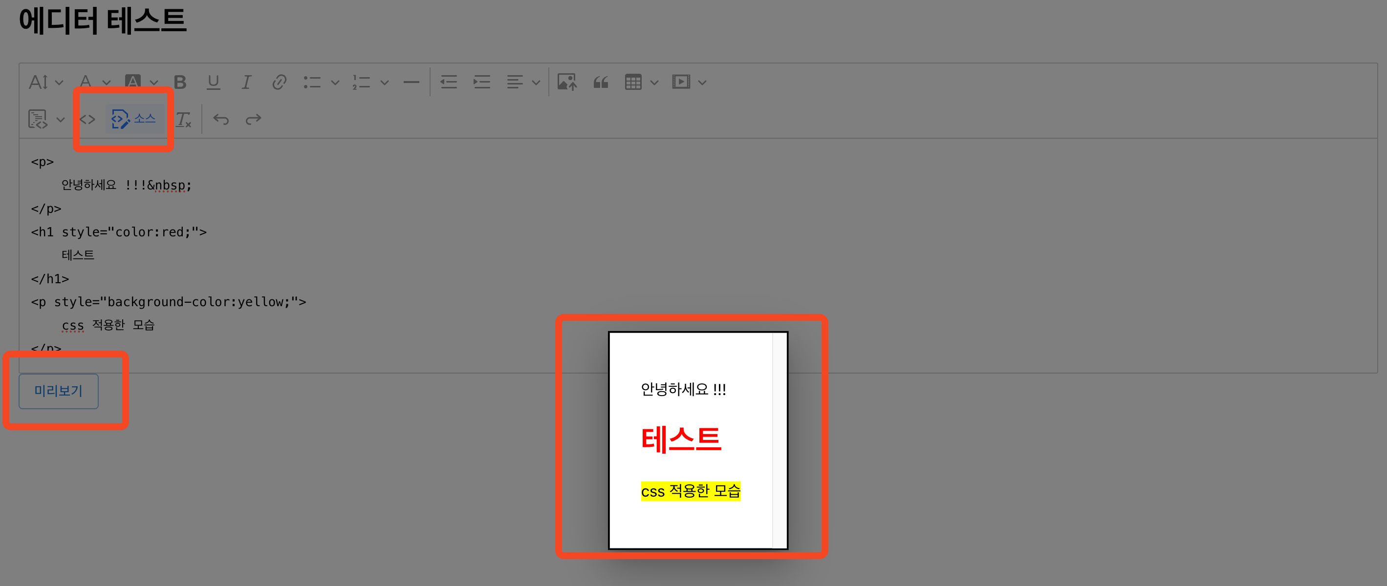 미리보기 버튼을 클릭하면 CKEditor에 작성한 내용을 모달로 확인할 수 있다.