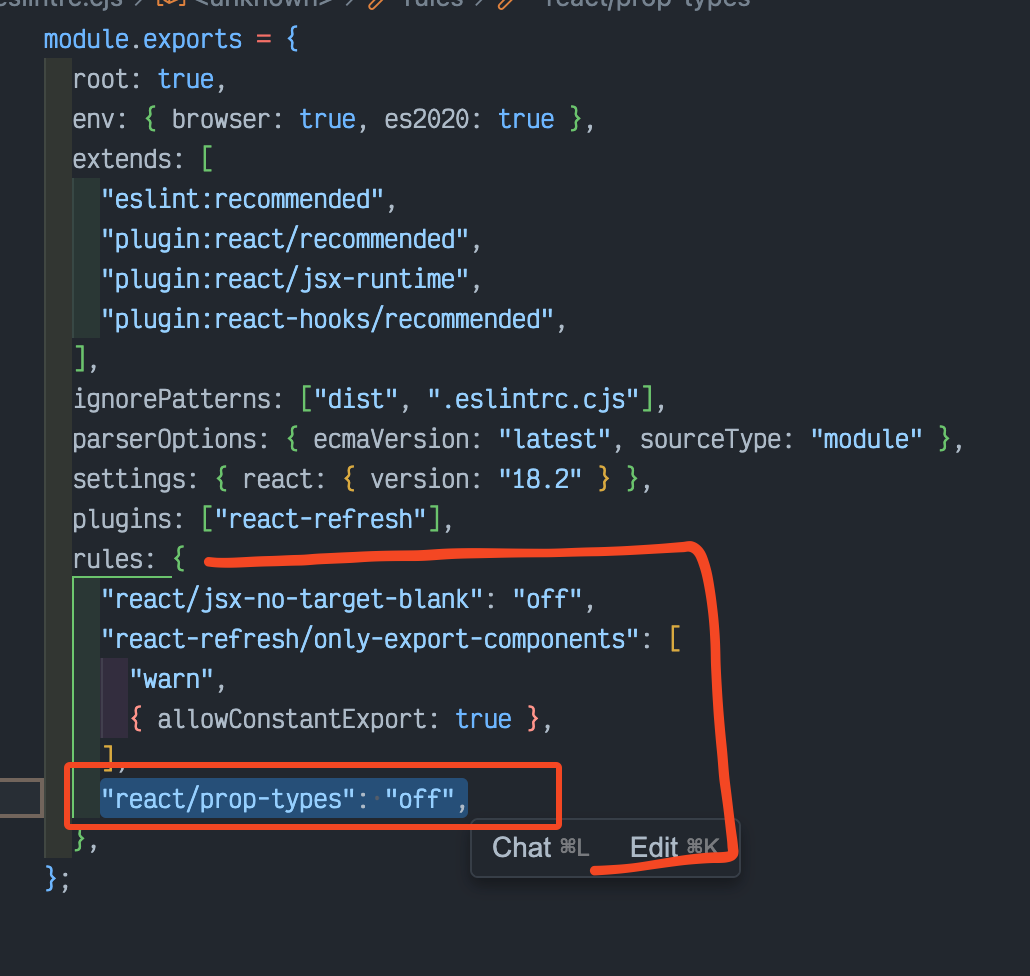 rules에 "react/prop-types": "off" 이 조건을 추가해주면 된다.